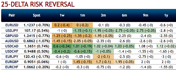 EUR risk reversals of 3-months tenors and above have still been indicating the hedging sentiments for the bearish risks in the long run, as the fresh negative bids are added to the positive RRs for 3m-1y tenors.