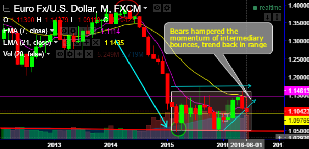Not only should the risk premium in the FX market fall, but the environment will not support the emergence of new trends. In particular, as you can probably observe from EUR/USD technical charts, the trend has been confined within the large 1.05-1.16 range holding since March 2015, we expect the range to persist going forward but slightly bearish biased.