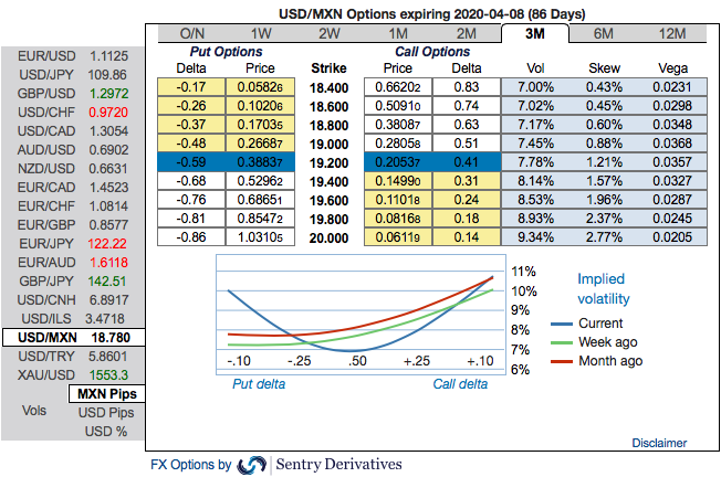 3M EURMXN ATM/25D 1*1.5 vol ratio call spread @9.45ch vs 10.5/10.75 indicative. Courtesy: Sentry & JPM