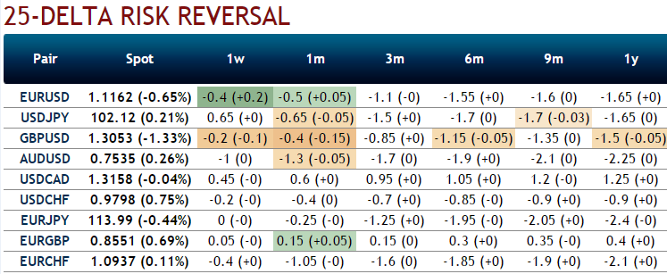 From the nutshell showing delta risk reversals of USDCAD, you can probably make out that the pair has been one of the most expensive pairs to be hedged for upside risks as it indicates calls have been relatively costlier over puts which indicate upside risks of spot FX is anticipated and hedging for such risks is relatively more expensive.