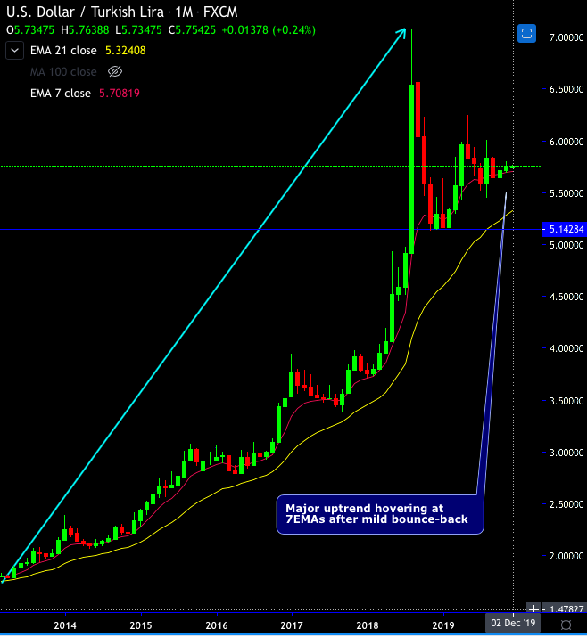 We remain pessimistic on the lira outlook and forecast USDTRY to (indicatively) reach 7.00 by the end of this year. Although major uptrend seems to be little edgy, bulls are hovering at 7EMAs after mild bounce-back (refer 1st chart).