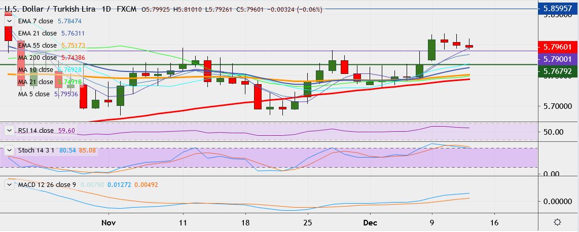 - On the downside, support is seen at 5.7809 (7-EMA). and break below could take it near 5.7749.