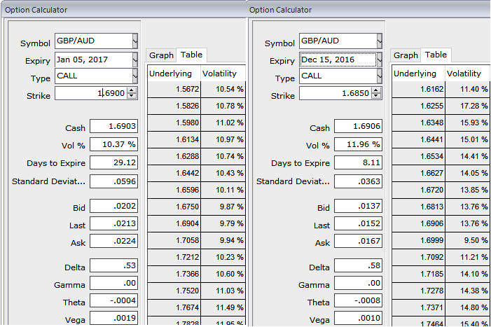 Rationale: The current implied volatility of GBPAUD 1w ATM contracts is just shy below 12%, and it is likely to shrink below 10.5% for 1m tenors as shown in the IV nutshell, shrinking IVs is conducive for over-priced option writers. Option writers of expensive calls with 1m expiries would be on competitive advantage.