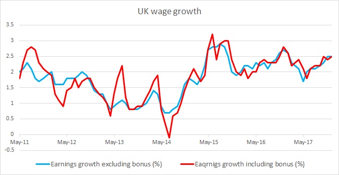 - So, the major focus will be on earnings growth, since that will be the measure of economic well-being. Moreover, a positive wage growth should help to downsize the fear of a slowdown in the economy heading towards Brexit negotiations. It will be a nice evidence that companies are ready to increase wages even in the face of an exit from the European Union. BoE governor Carney said that the central bank would be monitoring the level of income closely, especially since the referendum aftermath upbeat economic performance was due to consumer spending and credit. Income levels directly affect these two components.