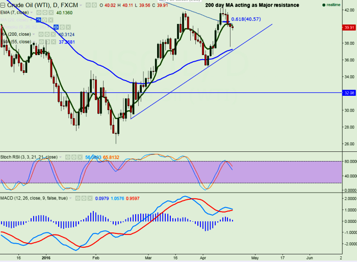 - Short term trend is weak as long as resistance $40.40 holds. WTI crude should close above $40.40 for further up trend .