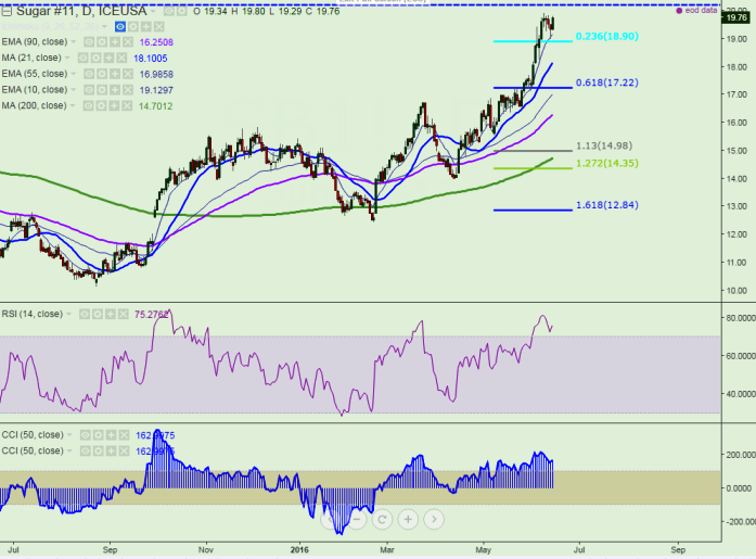 - The US sugar taken support near 10 day EMA and any slight weakness can be seen only below 19.