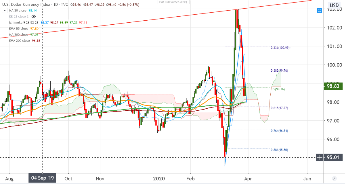 US President has extended the lockdown till Apr end and warned, "the peak, the highest point of death rate, is likely to hit in two weeks." The demand for Safe-haven assets is supporting DXY at lower levels.