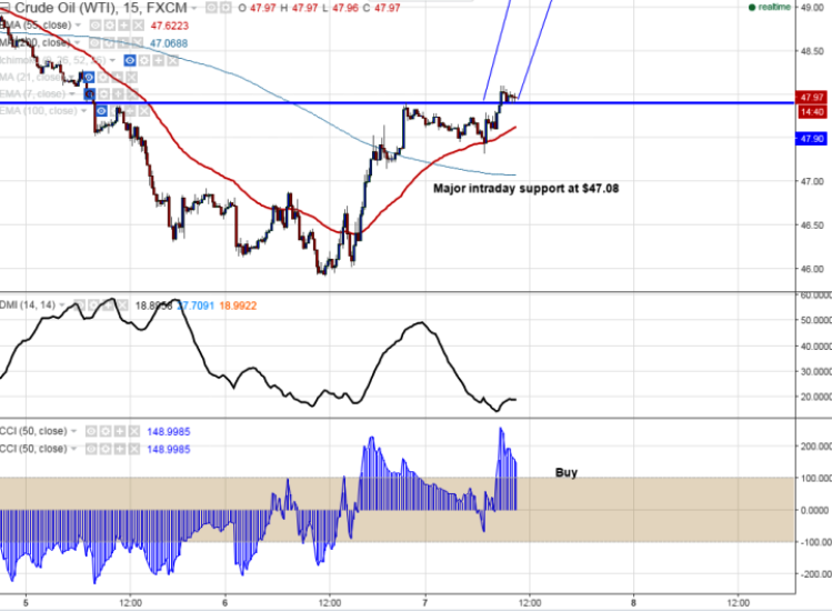 - US oil recovered slightly from the low of $47.32 at the time of writing. It is currently trading around $48.