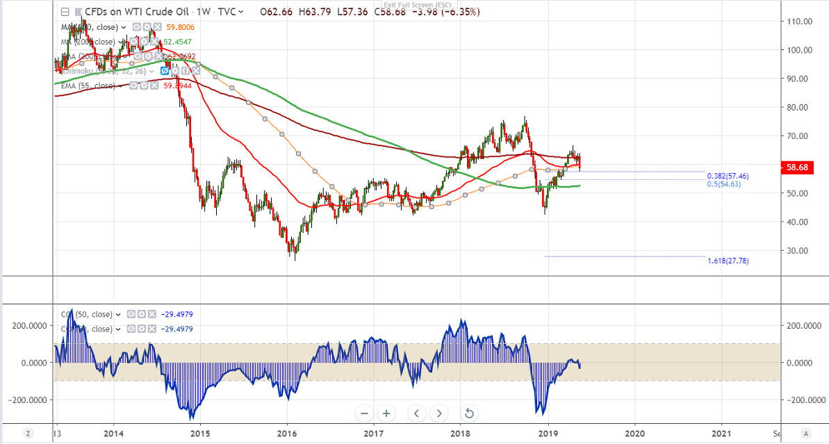 On the higher side major resitance is around $60 and any violation above targets $62.39 (300-W EMA)/$63.79.