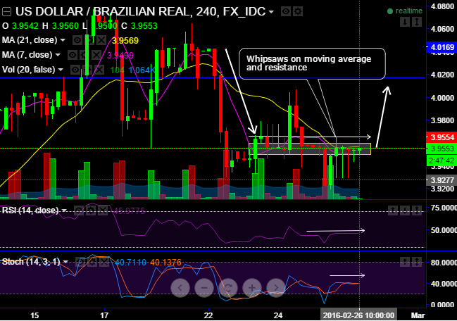 But intraday swings show whipsaws on moving average and resistance at 3.9550 mark.
