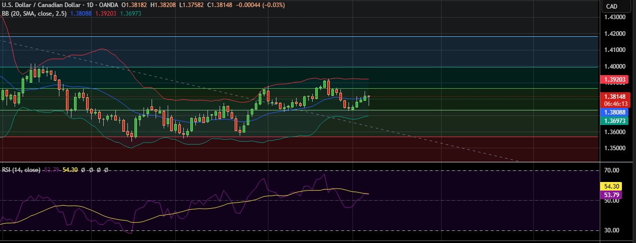 • Immediate resistance is located at 1.3861(50%fib), any close above will push the pair towards 1.3917(Higher BB).