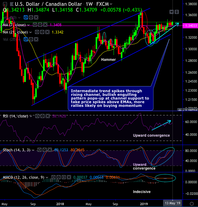 Alternatively, we advocated initiating longs in USDCAD futures contracts. We continue to uphold the same strategy by rolling over with June’19 delivery for the major uptrend.