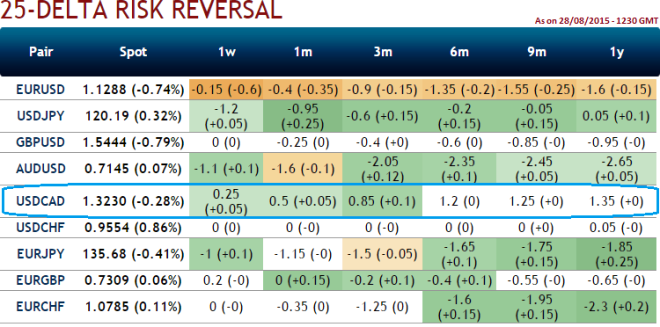 Since delta risk reversal of this pair divulges expensive hedging upside risks, as per the delta risk reversal computation in the money calls are overpriced premiums. In order to reduce the hedging costs, and those who expect the USDCAD to make a large move higher, then this strategy can be established as follows.