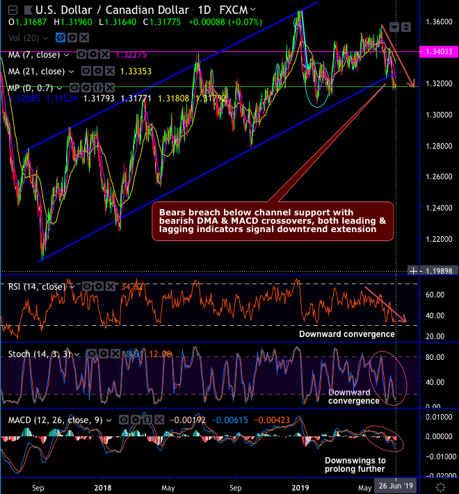 But for now, bears breach below channel support with bearish DMA & MACD crossovers as you can observe daily plotting, while both leading and lagging indicators signal downtrend extension.