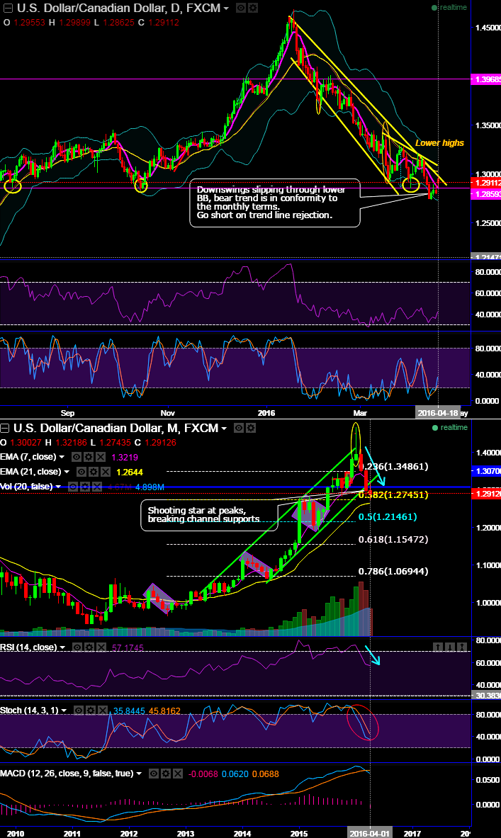 USDCAD bounces were restrained at trend line resistance at 1.2989 levels.