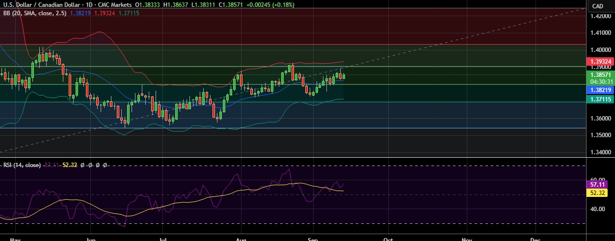 • Immediate resistance is located at 1.3904(50%fib), any close above will push the pair towards 1.3933(Higher BB).