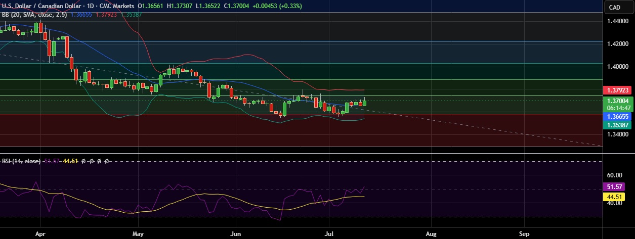• Immediate resistance is located at 1.3747(38.2%fib), any close above will push the pair towards 1.3792(Higher BB).