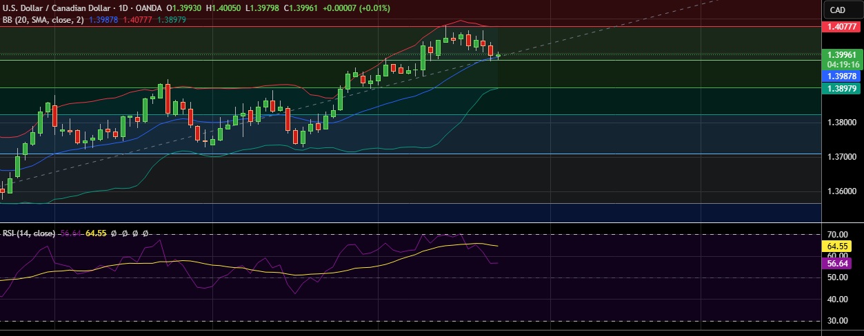 • Immediate resistance is located at 1.4000(Psychological level), any close above will push the pair towards 1.4080(23.6%fib).