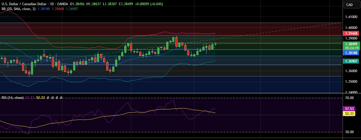 • Support is seen at 1.3818(SMA 20) and break below could take the pair towards 1.3799(38.2%fib).