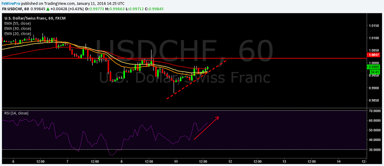 The USD/CHF rebounded from 0.9965 levels to hit high at 0.9983 levels, after Swiss retail sales printed negative figures in early European session. However after US session open the pair has continued to consolidate around 0.9987 levels.