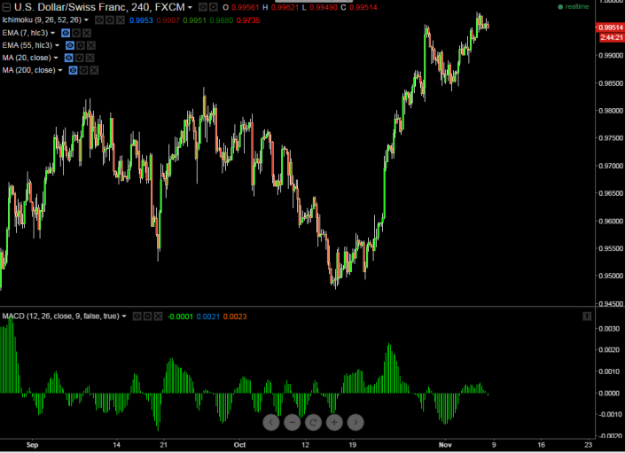 - USD/CHF has broken trend line resistance around 0.9960 and jumps till 0.9980. It is currently trading around 0.9956