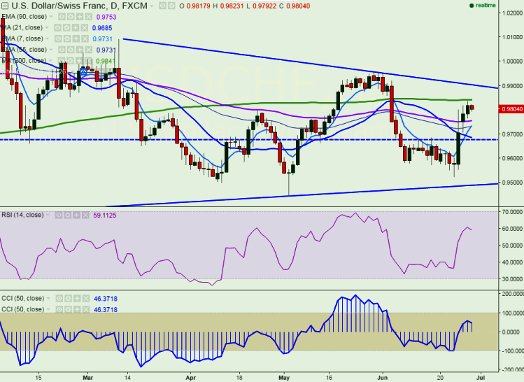 - USD/CHF has made a high of 0.9836 yesterday and started to decline from that level. It is currently trading around 0.9800.