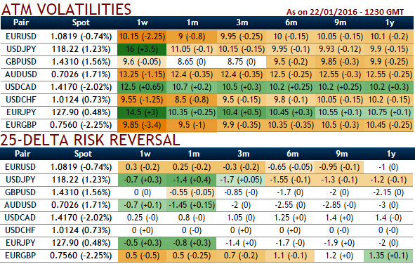 We can figure out the neutral delta risk reversals for GBPUSD and USDCHF for 1w expiries with sluggish implied volatilities. While conducting technical analysis also we found narrow range trend for USDCHF but slightly bullish biased in short run.