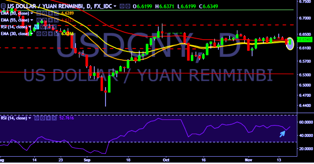 We prefer to take short position on USD/CNY only below 6.6199, stop loss at 6.6405 and target of 6.5839.