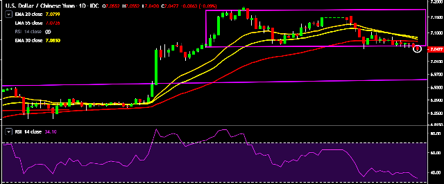 - Alternatively, a daily close below 7.0540 will drag the parity down towards key supports at 7.0474, 7.0108, 6.97, 6.9297 and 6.88 marks respectively.