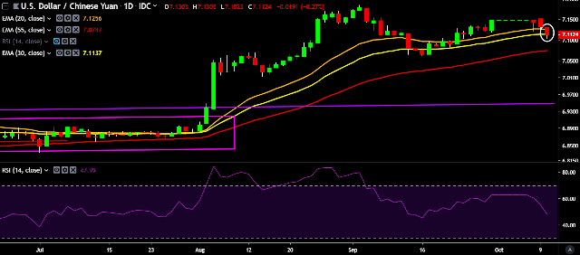 We prefer to take short position on USD/CNY around 7.1180, stop loss at 7.1310 and target 7.0621.