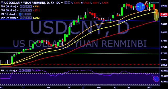 We prefer to take short position in USD/CNY around 6.9050, stop loss 6.9321 and target of 6.9615.