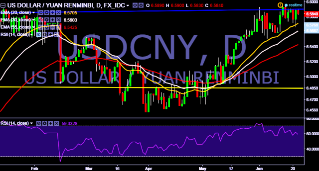 - Pair trades in tight range in between 6.5750 to 6.59 mark. A sustain break of either side will take the parity towards new directions.