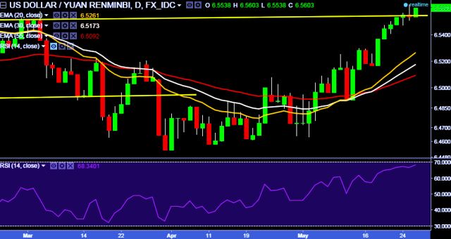 - It made intraday high at 6.5608 and low at 6.5538 levels.