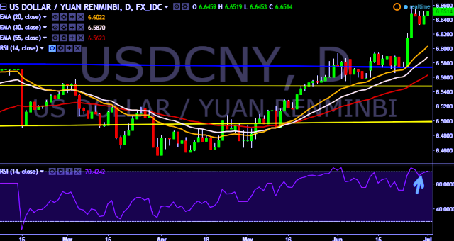 - It made intraday high at 6.6519 and low at 6.6453 levels.