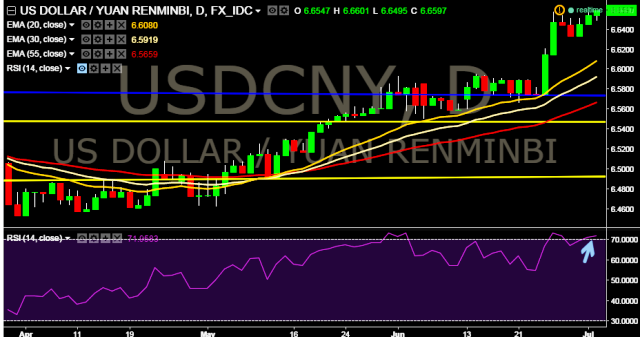 - It made intraday high at 6.6601 and low at 6.6495 levels.