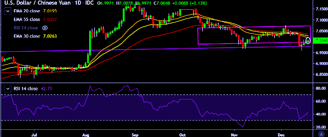 - USD/CNY is currently trading around 7.0049 marks.
