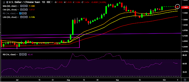 - Alternatively, a daily close below 7.13 will drag the parity down towards key supports at 7.1177, 7.1080, 7.0621, 7.0497, 7.0108, 6.97, 6.9297 and 6.88 marks respectively.