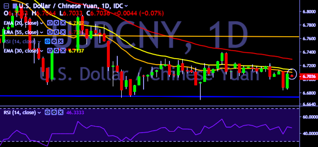 We prefer to take short position on USD/CNY around 6.7050, stop loss at 6.7210 and target of 6.6650.