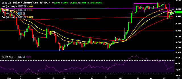 We prefer to take long position on USD/CNY around 6.8790, stop loss at 6.8650 and target of 6.9150.