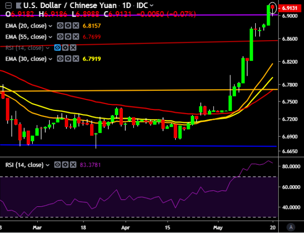 - It made intraday high at 6.9186 and low at 6.8988 levels.