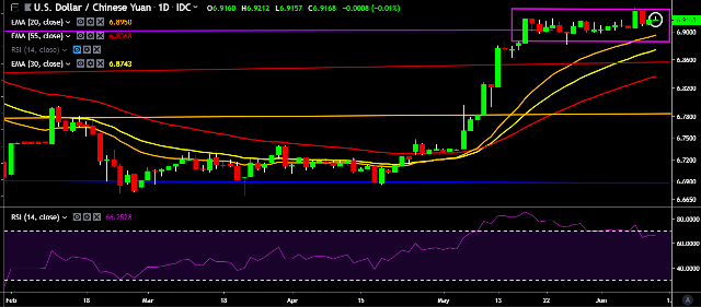 We prefer to take long position on USD/CNY only above 6.9212, stop loss 6.91 and target of 6.9297/6.94.