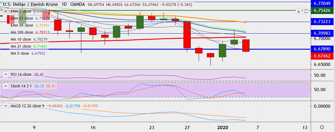 - Immediate resistance is located at 6.7072 (10-DMA), close above could take it till 6.7177 (21-DMA).