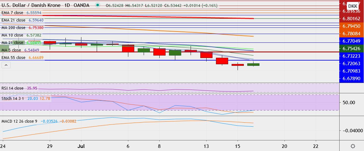 - USD/DKK is trading 0.2 up at 6.5348, having hit low of 6.5023 on Thursday, its lowest since March 9.