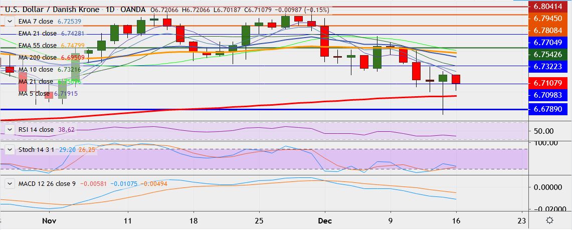 FxWirePro: USD/DKK hovers towards 4-month low, dip till 6.6947 likely