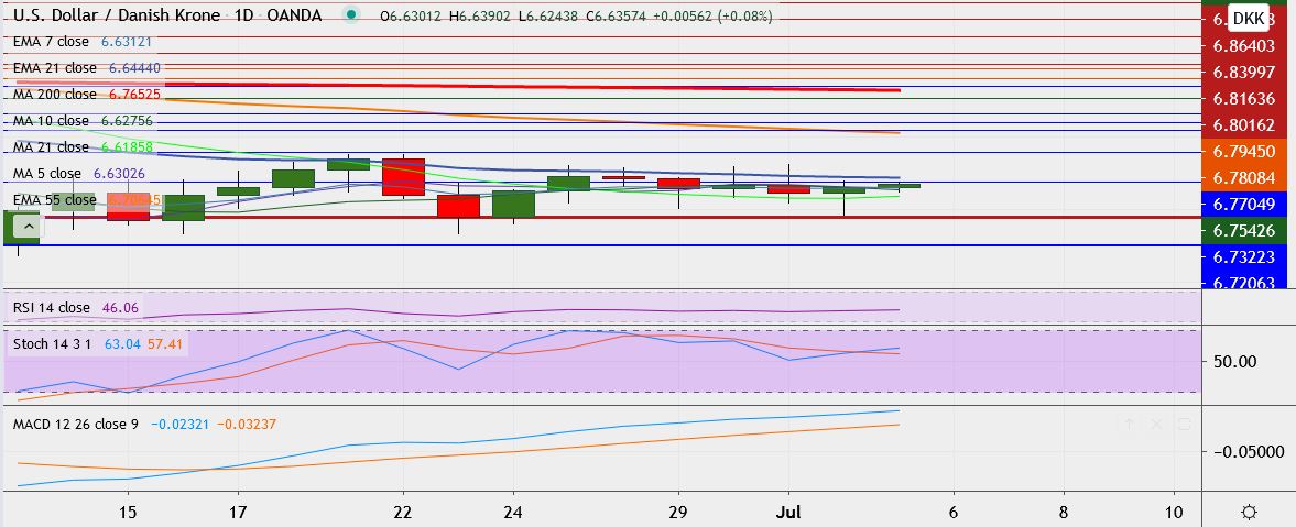 FxWirePro: USD/DKK struggles to break above 21-EMA amid virus resurgence fears