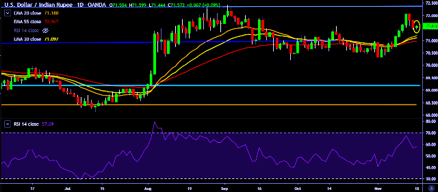 - It made intraday high at 71.60 and low at 71.44 marks.