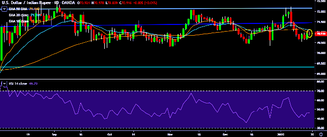 We prefer to take long position on USD/INR around 70.90, stop loss at 70.70 and target of 71.22/71.47 mark.
