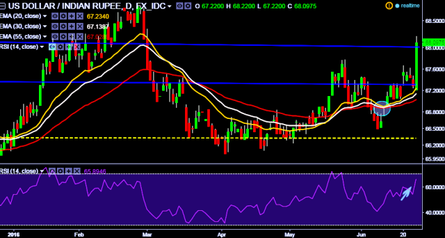 - Key resistances are seen at 68.35(March 1, 2016 high), 68.46, 68.66 and 68.78 marks respectively.