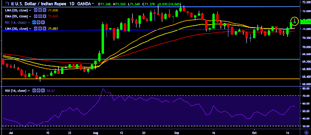 - It made intraday high at 71.56 and low at 71.34 marks.