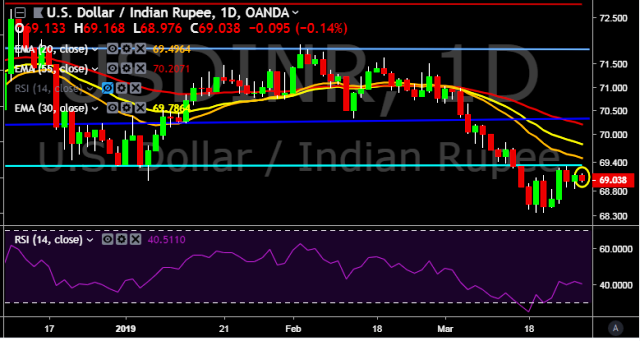 - USD/INR is currently trading around 69.03 marks.